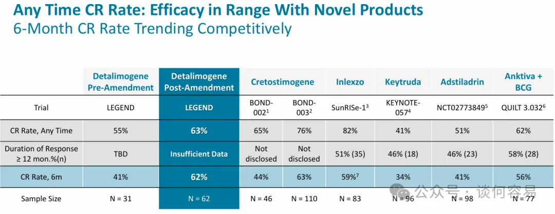 药和腺病毒载体基因疗法 Adstiladrin。但 Detalimogene 的 6 个月时的 CR 率不输于任何疗法。