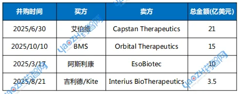 6月,另一家制药巨头艾伯维斥资21亿美元将Capstan Therapeutics收入麾下。