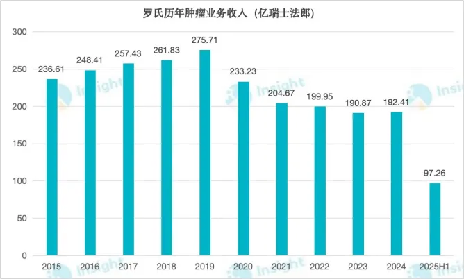 罗氏曾是肿瘤领域的绝对王者,凭借贝伐珠单抗、曲妥珠单抗和利妥昔单抗三驾马车,连续多年蝉联全球肿瘤业务 TOP1 宝座。然而,随着核心产品专利陆续到期,叠加重金押注的 TIGIT 单抗项目受挫等因素,罗氏肿瘤业务陷入了增长停滞状态。