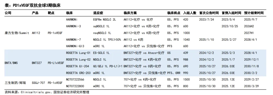 康方生物/Summit的依沃西单抗(AK112)(PD-1/VEGF),已启动多项全球3期,HARMONi研究数据已读出。