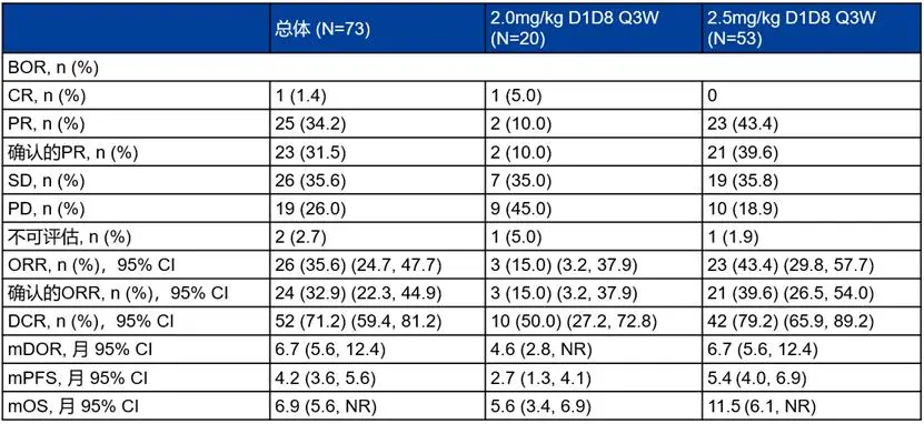 iza-bren能够取得这样的成绩并不让人意外,其实早在今年7月团队就在权威期刊《Nature Medicine》上发表了Ib期研究的优异数据。在82例ESCC患者中,共有73例可进行疗效评估,整体客观缓解率(ORR)为32.9%。其中,2.5mg/kg剂量组呈现出明显更优的治疗优势,ORR提升至39.6%,PFS为5.4个月,OS达到11.5个月。充分展现出iza-bren治疗晚期ESCC患者所表现出的抗肿瘤活性。