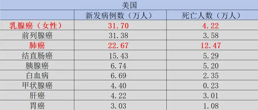 图:美国癌症新发病数与死亡数,来源:锦缎研究院
