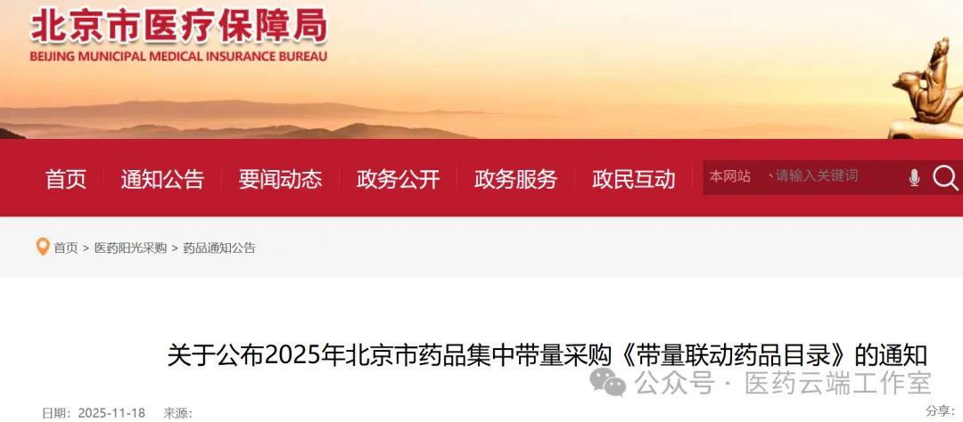 11月18日,北京市医保局发出《关于开展2025年北京市药品集中带量采购有关工作的通知》,该市将组织新一轮集采,采用带量联动和带量谈判的方式进行,采购目录将分批次公布。采购周期为3年。