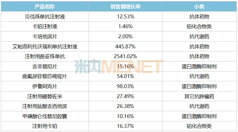 表1:2025上半年齐鲁制药的抗肿瘤药TOP20产品中正增长的产品