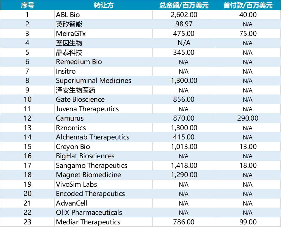 表1 2025年礼来作为买方开展的交易(截至11月18日)