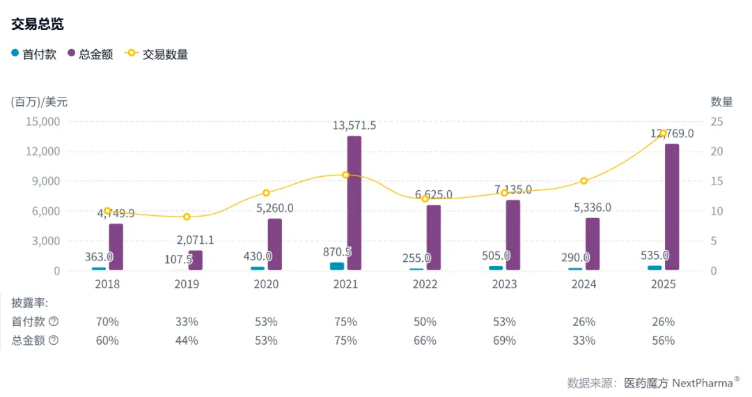 礼来是全球医药行业交易升温的一个注脚。根据医药魔方《2025Q1~Q3中国医药交易趋势报告》,前三季度全球交易数量及金额均有上涨趋势,交易数量达682笔,首付款达144亿美元,总金额达1910亿美元,两大指标均已超过2024年全年,行业交易热度持续攀升。
