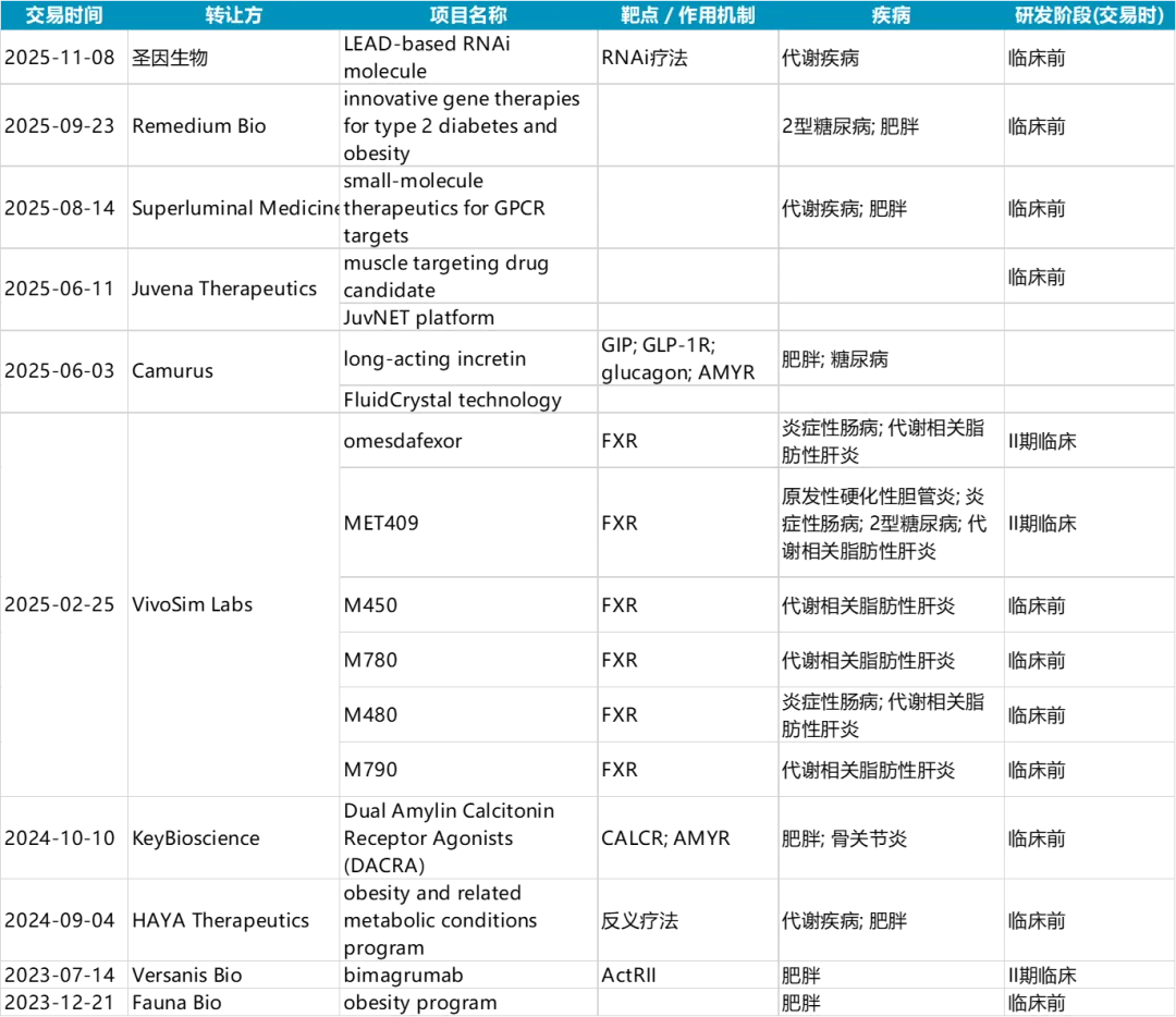 表2 2023-2025年礼来作为买方在代谢领域开展的交易