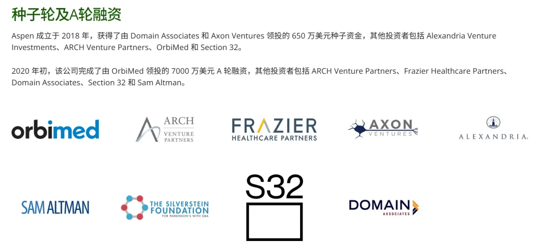 C轮融资将用于:支持Aspen公司用于治疗帕金森病的主要自体细胞疗法候选药物