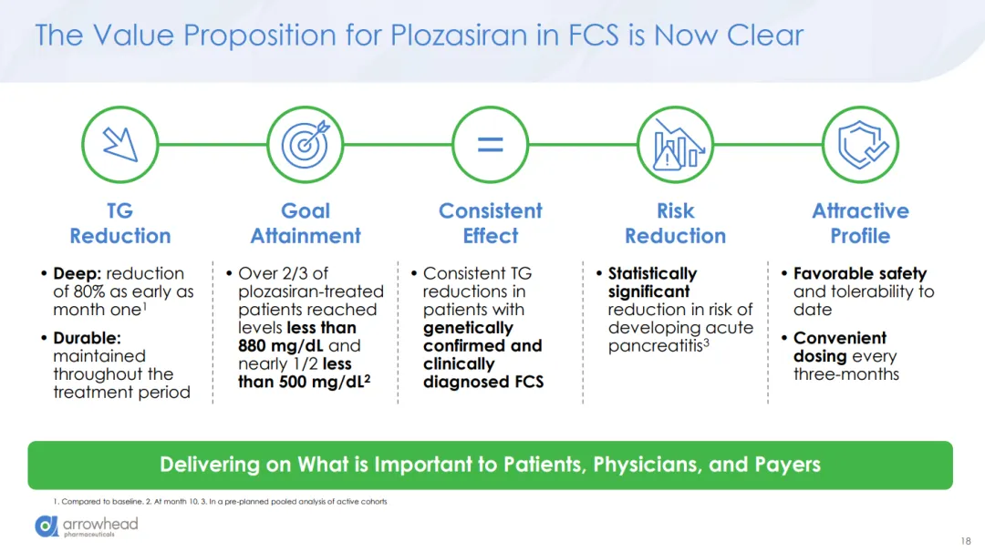 “REDEMPLO获得FDA批准是Arrowhead公司发展历程中的一个里程碑。对于所有参与研发过程的人员来说,这都是一个值得骄傲的时刻,也为美国约6500名患有遗传性或临床型FCS的患者带来了新的希望。此次获批及随后的上市标志着我们征程新篇章的开启——我们始终致力于为罹患重疾的患者提供改变生命的疗法,”Arrowhead Pharmaceuticals总裁兼首席执行官Christopher Anzalone博士表示。“REDEMPLO也是首个获得FDA批准的、采用Arrowhead专有的、差异化的靶向RNAi分子(TRiM™)平台的药物。Arrowhead在创新领域持续引领潮流,TRiM™平台目前有望将siRNA递送至体内七种不同的细胞类型,并有可能在一个分子中同时抑制两个基因的表达。这项技术的广度以及我们不断增强的商业能力,将极大地拓展我们能够治疗的疾病种类,并改变更多患者的生命。”