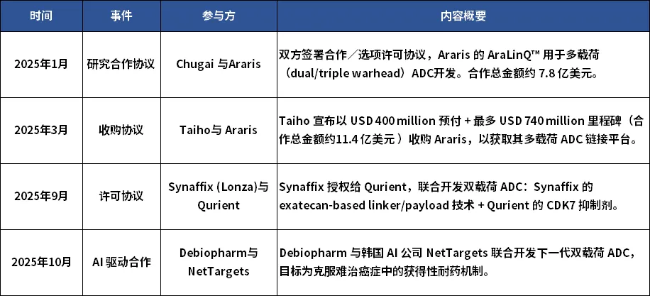 双载荷 ADC 交易一览