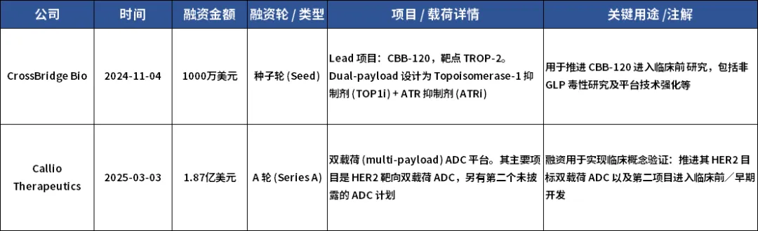 双载荷 ADC 融资一览