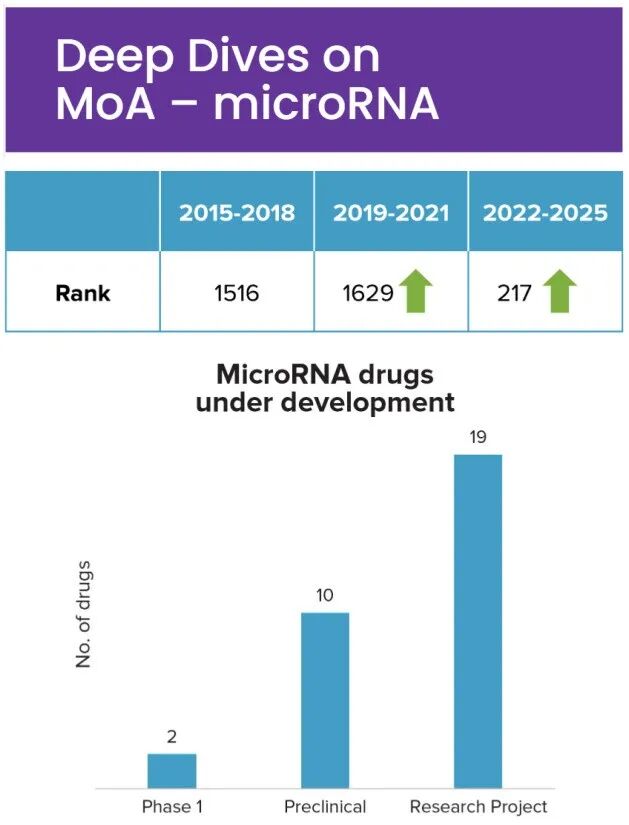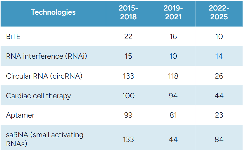 RNA技术:环状RNA(circRNA)和微型RNA(miRNA)正在获得发展动力,辉瑞、诺和诺德和默沙东近期均达成了相关交易。