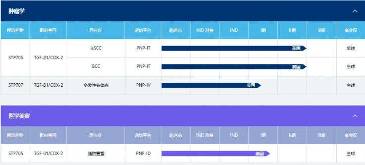 圣诺医药采取双平台协同驱动、多领域广泛探索的模式。其拥有的PNP(肿瘤局部递送)与GalAhead™(肝靶向)两大核心平台,为其在肿瘤、代谢、心血管等多个关键治疗领域同步推进研发项目提供了有力支撑。其研发的双靶点技术(例如STP705),彰显出更为前沿、创新的药物设计理念。