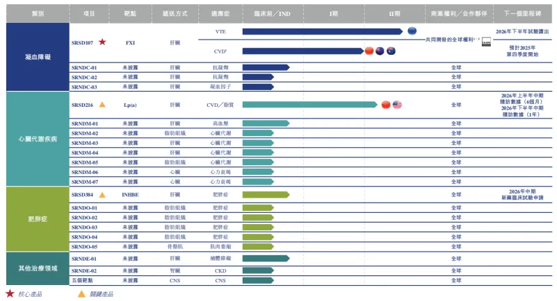 瑞博生物成功搭建起一条包含七款处于临床阶段药物的多元管线,其覆盖范围广泛,全面涉及心脑血管、代谢以及肝脏疾病等多个治疗领域。其中,核心产品RBD4059更是全球范围内在靶向FXI的SiRNA药物研发进程中处于领先梯队,推进速度极快。