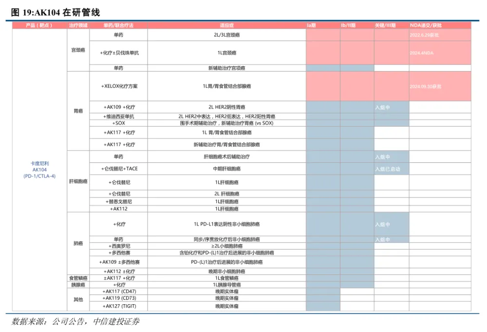 卡度尼利单抗(AK104)在研管线/图片来源:中信建投证券研报