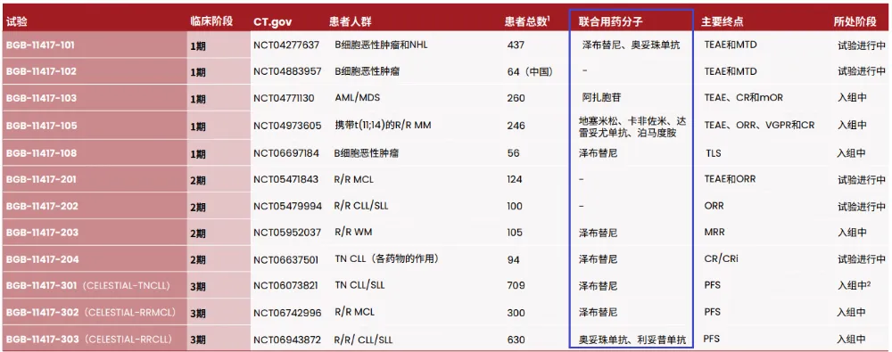 索托克拉开启多项联合用药探索/图片来源:百济神州2025年第三季度临床试验附录
