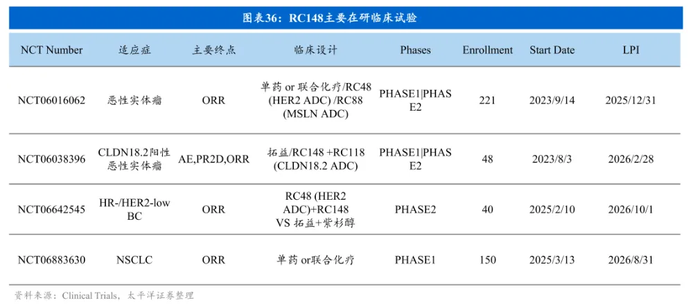 RC148主要在研临床试验/图片来源:太平洋证券研报