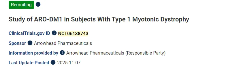 在2025年8月13日,Sarepta需支付的1亿美元里程碑款项已触发:Arrowhead针对1型强直性肌营养不良症 (DM1) 的研究性RNA干扰