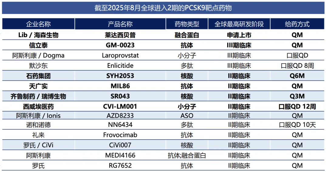 目前全球已有6款PCSK9单抗药物上市,1款siRNA药物获批,在研产品覆盖单抗、siRNA、小分子、口服环肽乃至基因编辑疗法,呈现出多技术路径并进的研发格局。