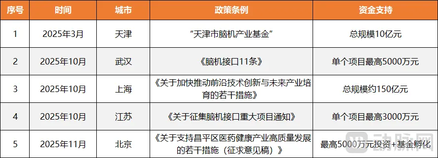 除市场资本外,政府资金同样是脑机接口企业重要的融资渠道之一。今年以来,国家层面发布了多项关于脑机接口的重磅政策,先是在7月,工信部、国家发改委等七部门联合发布《关于推动脑机接口产业创新发展的实施意见》,脑机接口产业正式提升至国家战略高度;紧接着在10月,“十五五”规划又将脑机接口列入“六大未来产业”,战略地位再度提升。而在政策推动下,越来越多的政府专项资金正在加速向脑机接口领域倾斜。
