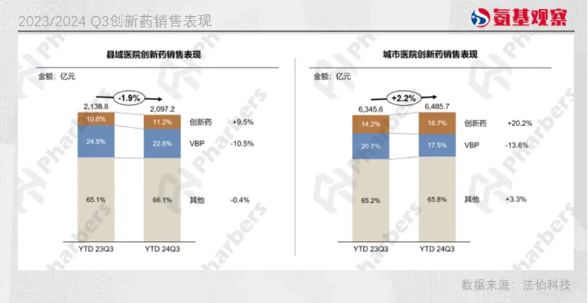 近两年,县域医院渠道创新药销售额的增长,为整体市场发展注入了动力,但与城市医院相比仍存在明显差距。最新统计显示,县域医院创新药销售规模占比和增速分别为11.2%和9.5%,远低于城市医院。
