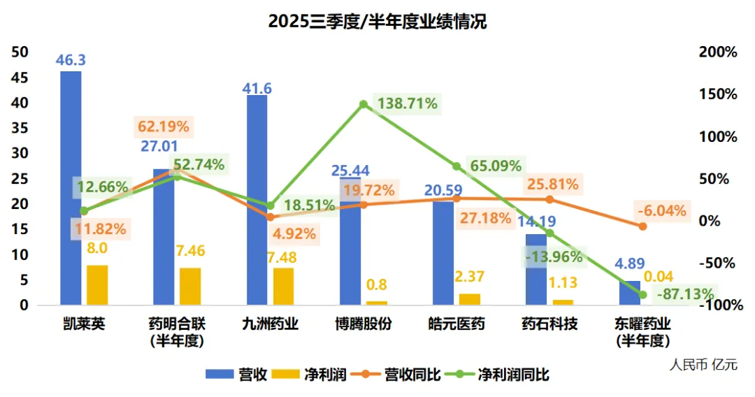 东曜药业截至半年度报告披露其营收4.89亿,同比下滑6%,净利润400万左右,同比下滑较多达87%。