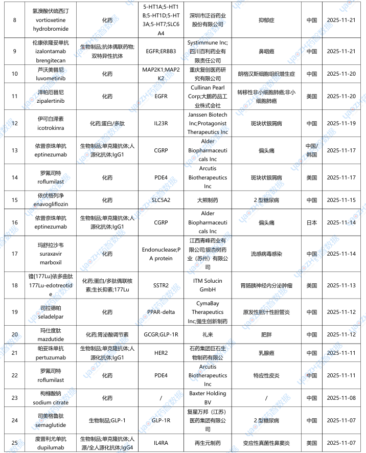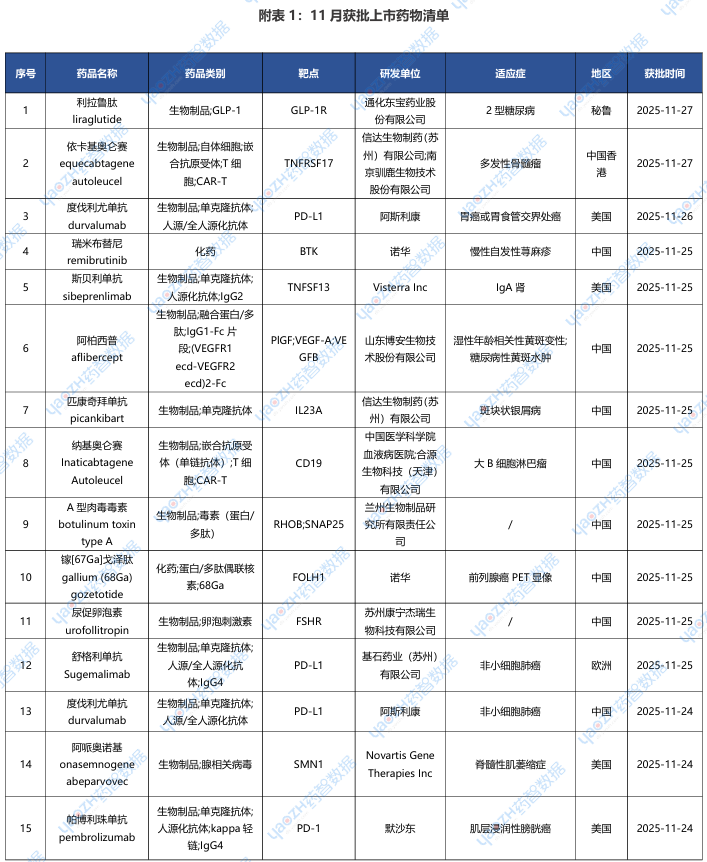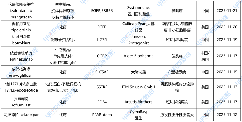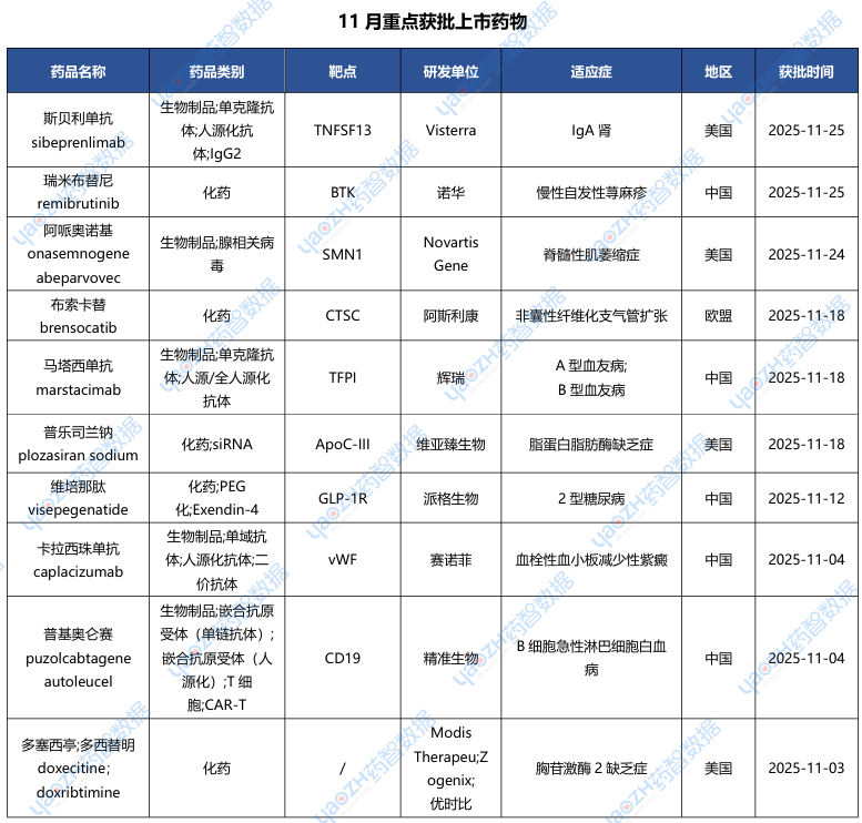 全球新药2025年11月进展概述