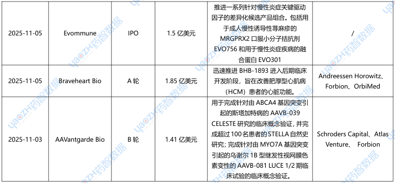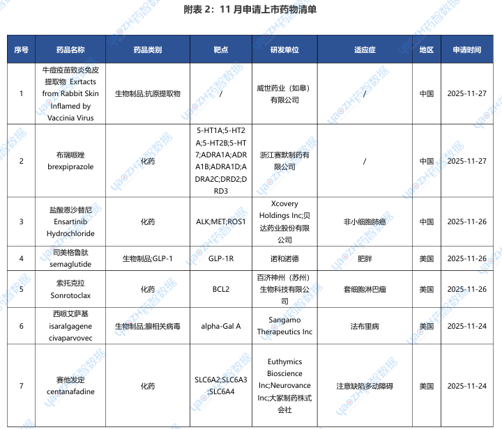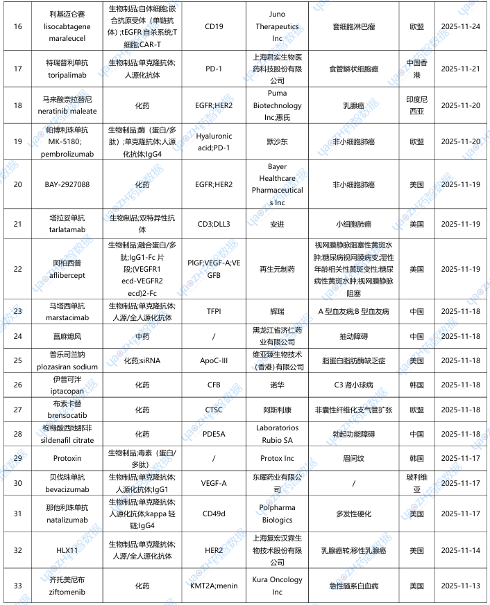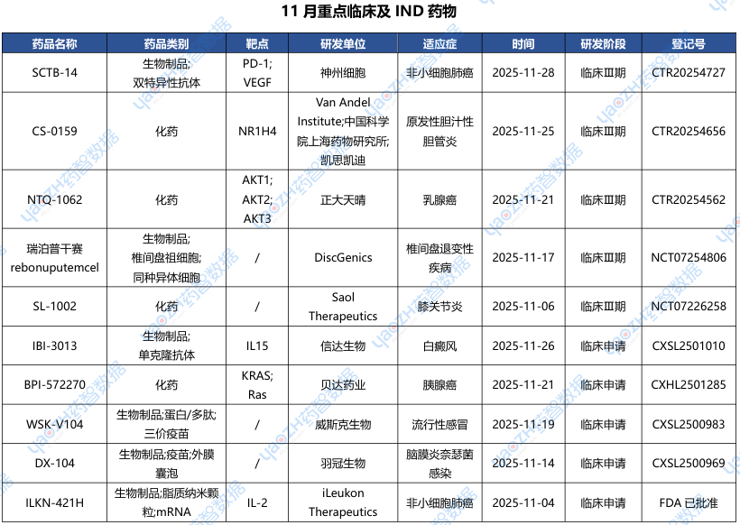 全球新药2025年11月重点项目