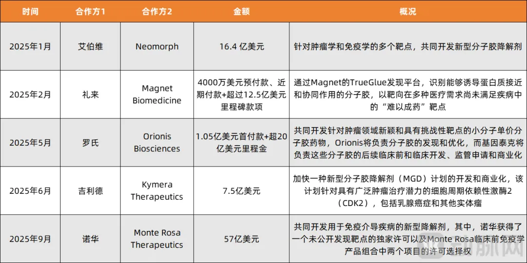 动脉网不完全统计,2025年分子胶领域达成的BD
