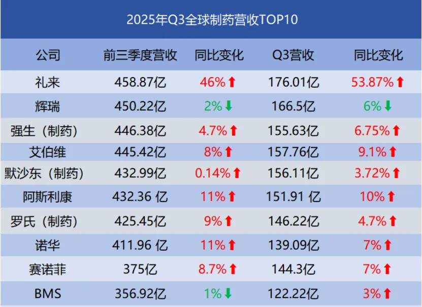 首先,是产品维度上“首创”与“跟随”的鸿沟。礼来凭借在GLP-1等领域的长期深耕,推出了替尔泊肽。这类产品享有全球定价权和巨额利润,仅2025年前三季度就贡献了超过248亿美元的营收,同比增长125%。