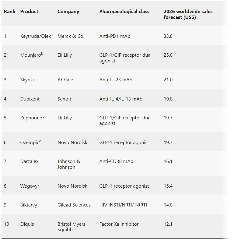 2026年畅销药预测TOP10