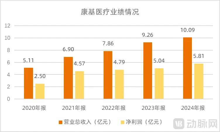 康基医疗在业务上的持续拓展为公司的业绩增长提供了保障。过去五年间,康基医疗的收入从5.11亿元增长到10.09亿元,净利润也从2.50亿元增长到5.81亿元,净利润的增幅超过收入增幅。