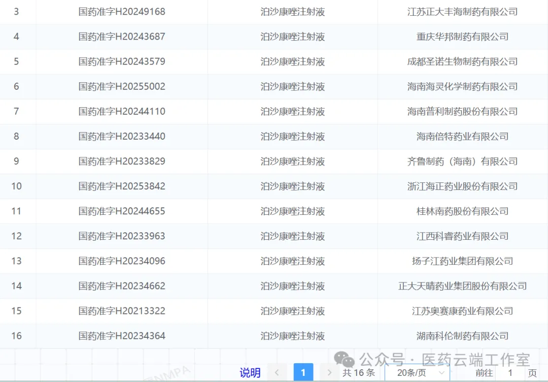目前16个批文,注射液2020年国内上市,2022年国谈纳入医保目录,2024年转为常规目录。注射剂纳入第十批国采,9家中选。