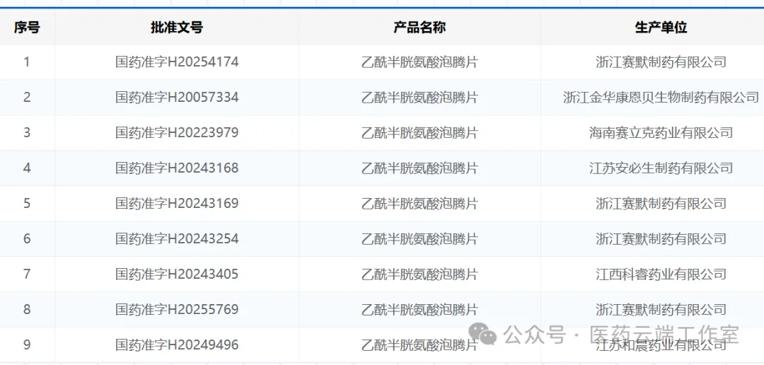 乙酰半胱氨酸是广泛使用的化痰药物,9个批件,6个厂家,纳入第十批国采,有4家企业中选。