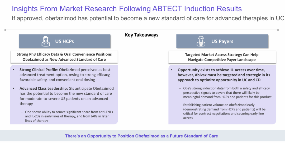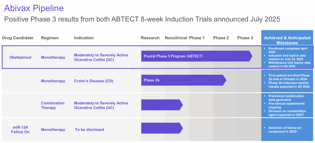 Abivax在7月宣布其ABTEC3期临床8周诱导试验的患者报告结果(PRO),该试验评估了一种增强miR-124表达的口服小分子药物obefazimod在中度至重度活动性溃疡性结肠炎(UC)成年患者中的疗效。除了试验的临床疗效终点外,PRO在确定患者如何感知症状、生活质量和日常生活活动的变化方面也很重要。Abivax正在使用microRNA技术,这是一项现已获得诺贝尔奖的科学发现,将彻底改变IBD的未来治疗。
