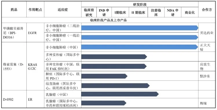 其对外授权的另一款产品格索雷塞是KRAS G12C抑制剂,用于治疗带有KRAS G12C突变的非小细胞肺癌、结直肠癌等多种癌症,是国内首个自主研发并进入临床试验阶段的KRASG12C抑制剂,并在美国、澳大利亚、中国、韩国、中国台湾等多个国家及地区开展了国际多中心临床试验。