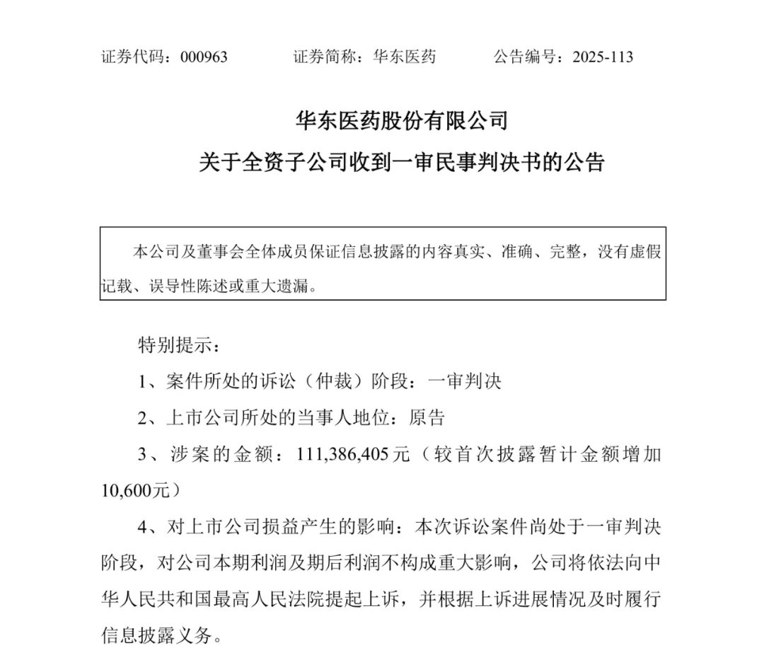 此外,公告同步曝光华东医药“诉讼家底”,截至12月12日,境内未达重大披露标准诉讼涉案金额3.699亿元,境外2539.5万元,但公司强调“均不影响生产经营”。