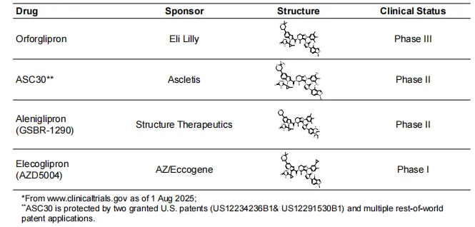 ASC30作为一种新型口服GLP-1R偏向性小分子激动剂,不招募β-arrestin,虽然在进度上不是最快,但依然在同类药物中展现出竞争优势。