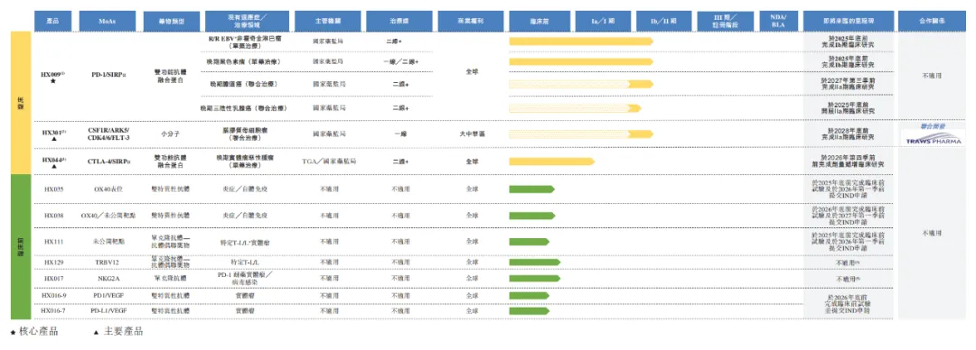除了OX40技术平台孵化的管线外,公司早研管线中还有TRBV12 ADC、NKG2A单抗等这样新靶点的前沿管线,以及时下热门PD-(L)1/VEGF双抗。另外,公司还有一款与Traws Pharma合作开发针对胶质母细胞瘤的临床阶段管线HX301。