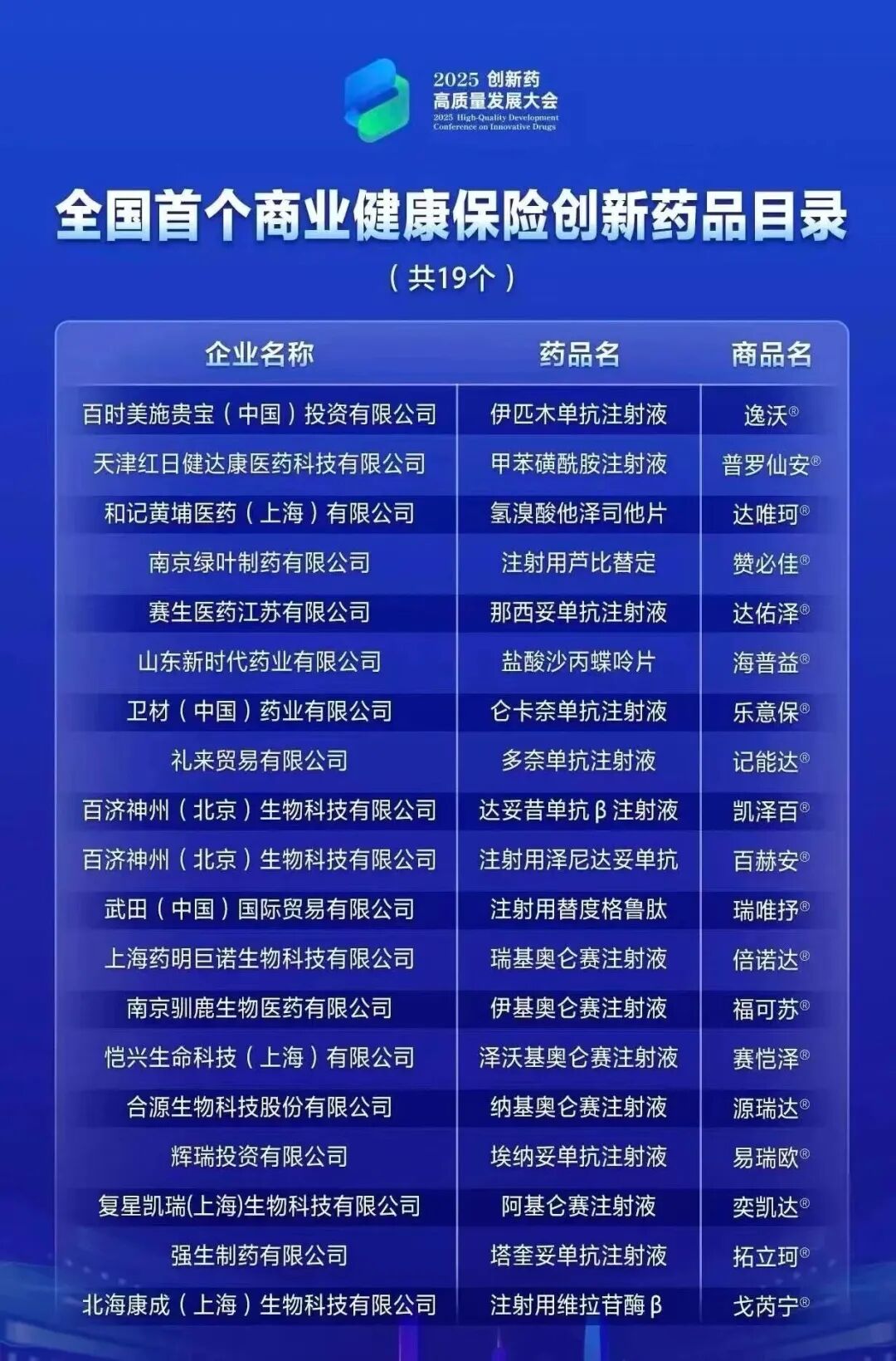 图2. 此次纳入商保的19种药品名录