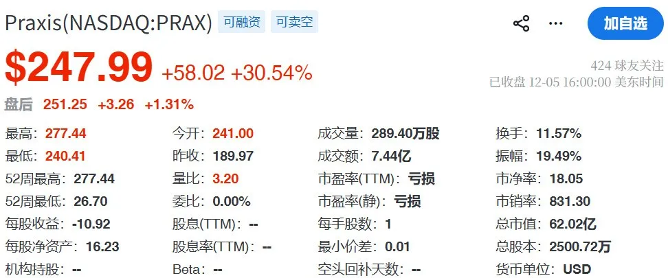 受此利好,Praxis股价当日收盘上涨了30%。