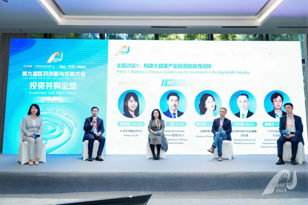 Partners管理合伙人柳丹、达晨财智合伙人李江峰、百济神州生科创投董事总经理刘为民、广州产投资本生物医药行业组负责人潘岷溟围绕“构建大健康产业投资的良性闭环”进行讨论。