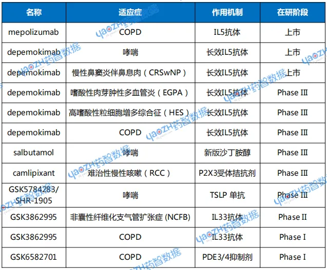 表1 GSK在呼吸领域布局