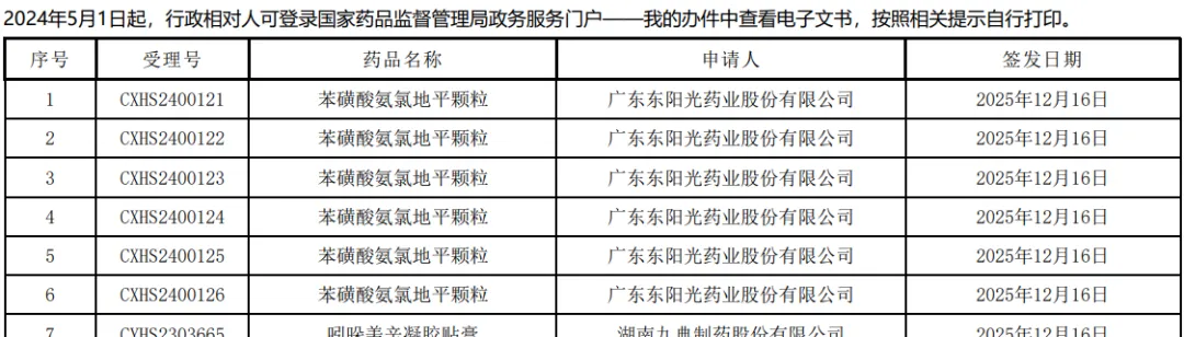 最令人瞩目的是国内仿制药巨头广东东阳光药业。在17日的名单中,该企业申报的6个苯磺酸氨氯地平颗粒受理号(CXHS2400121-126)全数收到了通知件 。作为2.2类改良型新药,这6个号的集体“翻车”,极有可能是未能证明较片剂有明显的临床优势,或因为在颗粒剂的稳定性或杂质控制上未能优于原研,触碰了新规红线。