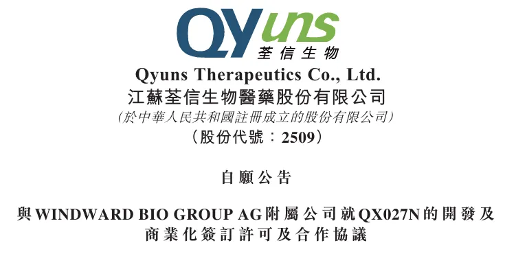 荃信生物将有权收取总额高达7亿美元的付款,包括首付款、Windward Bio的股权、开发及商业里程碑付款,以及根据QX027N在许可地区的销售净額收取分级特许权使用费。