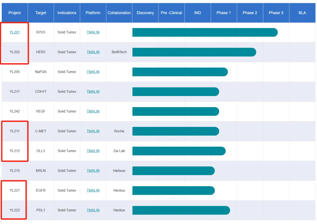宜联生物最早的一笔对外授权交易可以追溯到2022年,与复宏汉霖就PD-L1和EGFR的两个指定靶点进行技术平台战略合作,也就是现在管线列表中的YL221和YL222,后面的事情大家都知道了,YL222(即HLX43)成了复宏汉霖目前最有潜力治疗泛实体瘤的管线,不过这个合作较早,双方均没有披露具体合作金额,但从上市公司口径来看,合作的代价不会太高。