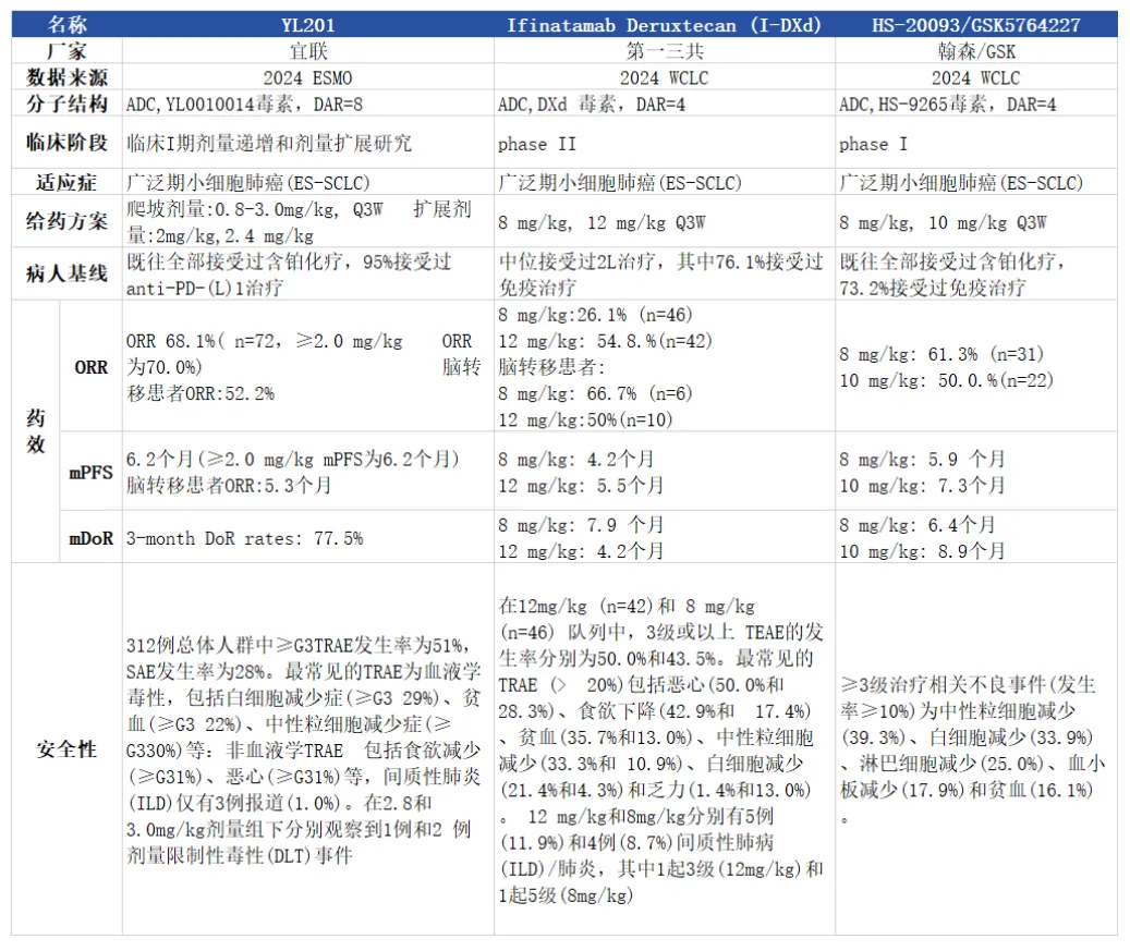 (YL201、DS7300、HS-20093在SCLC临床数据对比 图源:凯莱英)