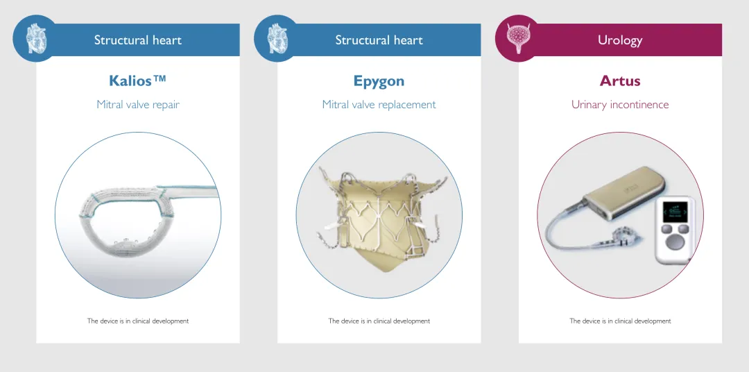 Medical本身定位于“解决重大未满足临床需求的植入式器械公司”,现有产品管线覆盖心脏瓣膜、血管、功能性植入等多个方向。其中,二尖瓣瓣环 Kalios 已与