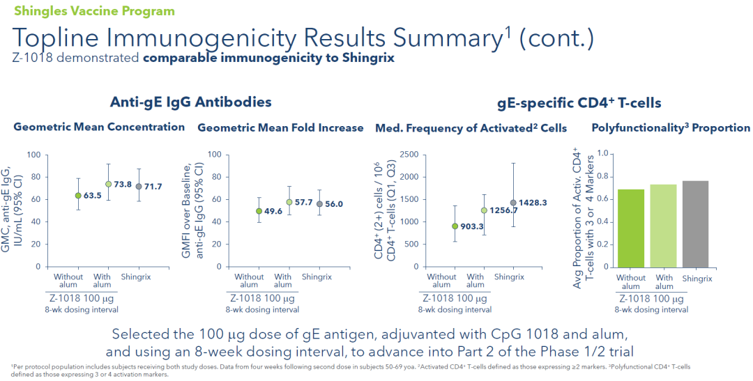 Dynavax的带疱疫苗Z-1018在初步临床中表现出与Shingrix相当的免疫原性,抗体和CD4 T细胞免疫均与Shingrix相当。