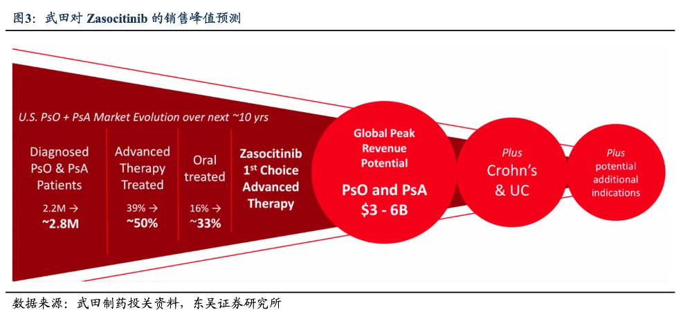 供需错配催生了巨大市场,参考武田对于美国银屑病市场的估计,在2034年左右,口服药物有望提升至33%的市占率。